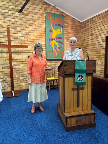 (Below) Guest speaker at Cafe Church held 24th September, 2024 was the founder of Kisaru Nkera Initiatives (KINI). Members of the congregation shared comarderie with members of Macksville congregation. Pictured Rev. Jo Smalbill with Barbara Parkins from KINI. Our church help to support the great work of Barbara.