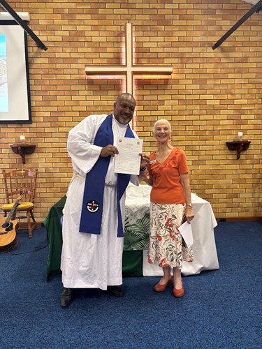 (Below) Jan presenting Pastor Fil with his Lay Presider Authorization on Sunday 2 November, 2025.